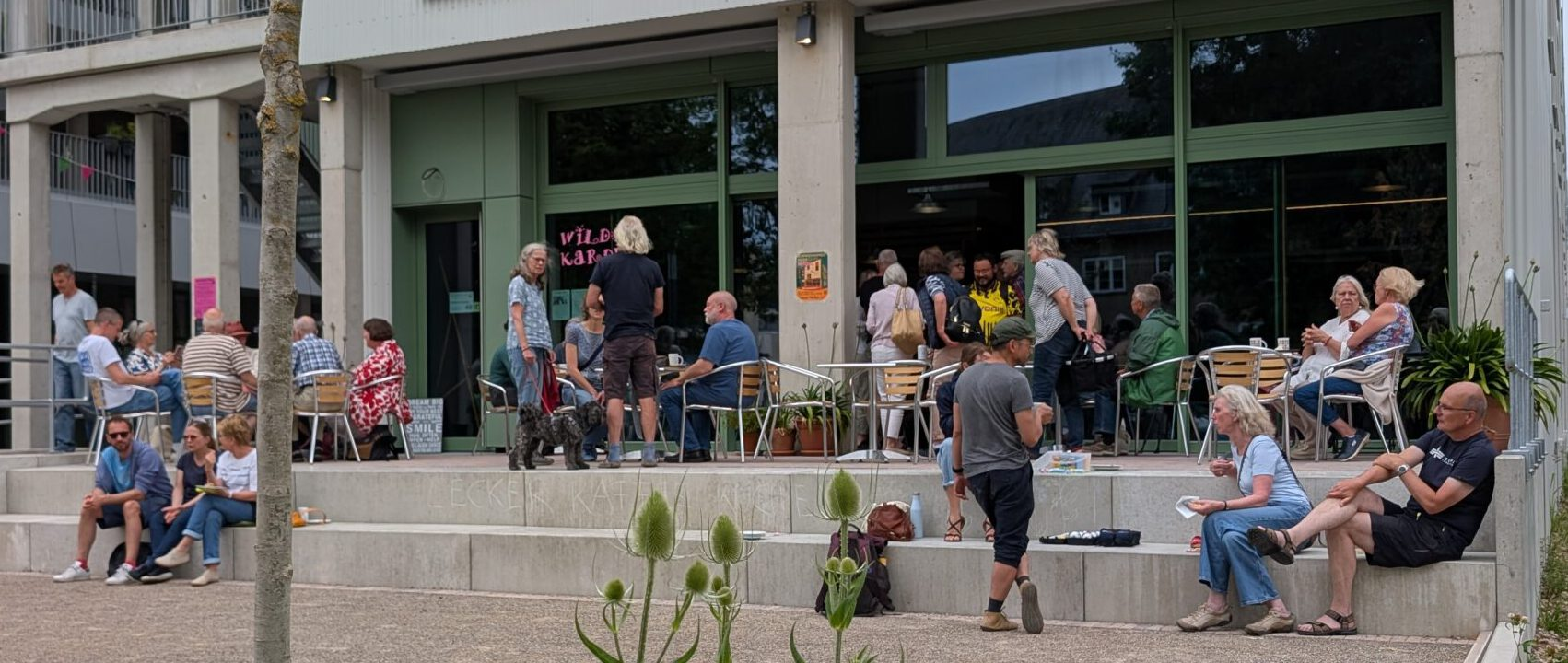 Wir schauen spontan, ob wir uns zum Nachbarschafts-Treff in die Wilde Karde setzen, oder ob wir es uns nebenan im Coworking gemütlich machen. Fragt euch ab etwa 19:00 Uhr einfach durch. Es gibt viele nette Leute, die euch den Weg zeigen. Alternativ sind wir auch über unsere Telefonnummer erreichbar. Wir freuen uns wie immer auch auf neue Gesichter.